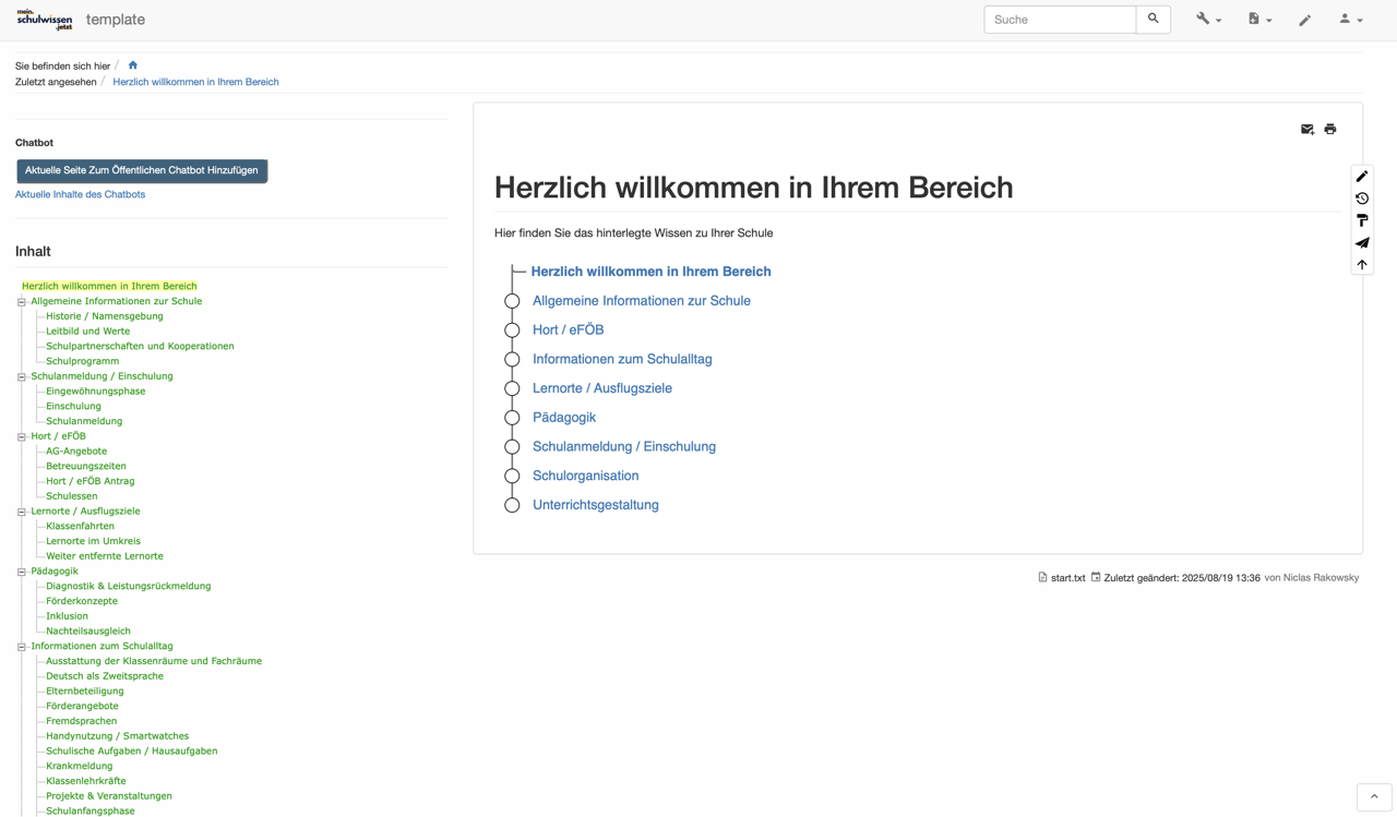 • Automatische Unterstützung durch optionalen Chatbot für Kollegium und Öffentlichkeit