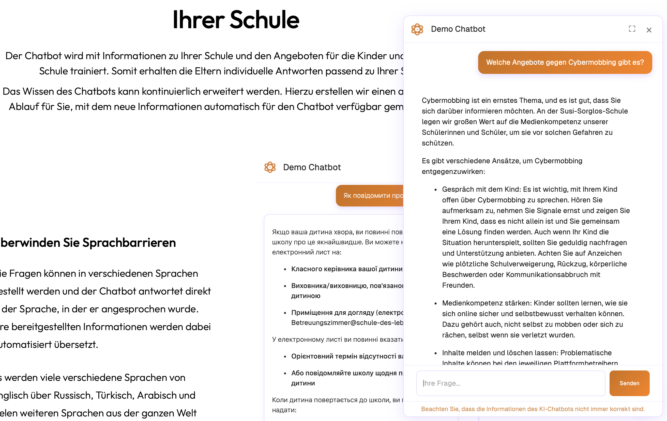 • Optional: Schulchatbot auf Basis Ihres Wissens – intern fürs Kollegium und extern für die Schulwebseite